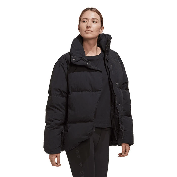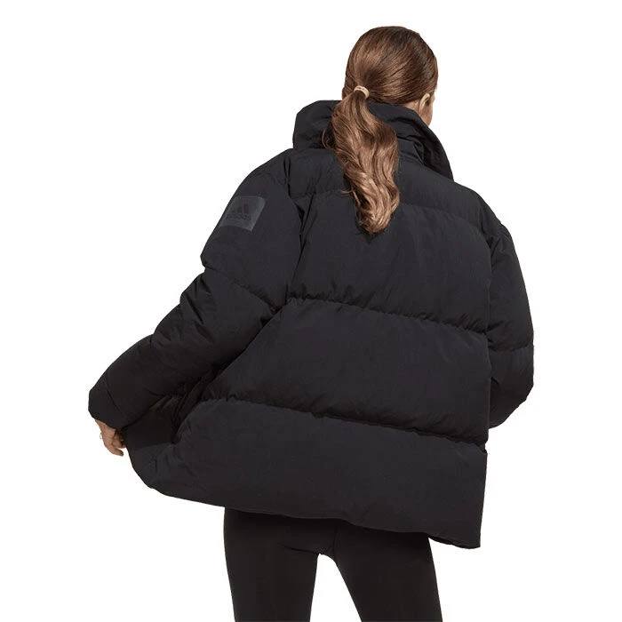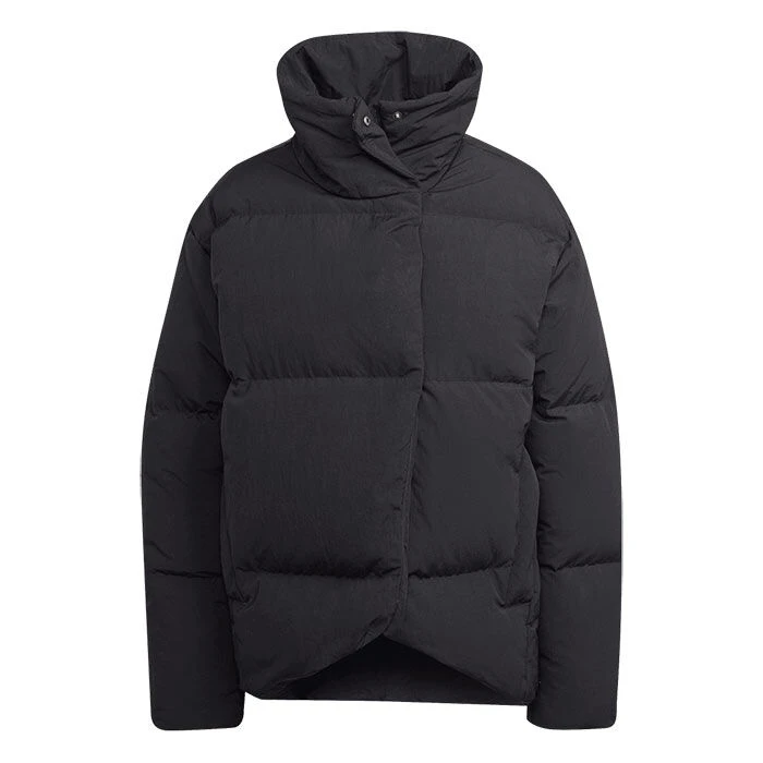 Stand out in a sea of puffer outerwear. This women’s adidas Big Baffle Down Jacket elevates your look with wide baffles, a high collar and cross-over styling. It fits loose and snaps closed so it’s a breeze to wear. Go ahead–steal the show.
