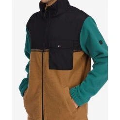 The Billabong A/Div Boundary Trail Zip-Up Fleece is an easy cold weather adventure essential. Made from double fleece to lock in warmth, this full-zip jacket features a mock neck, elastic cuffs, bungee cinched hem, front welt pockets, chest pocket with flap and custom Adventure Division details throughout.
