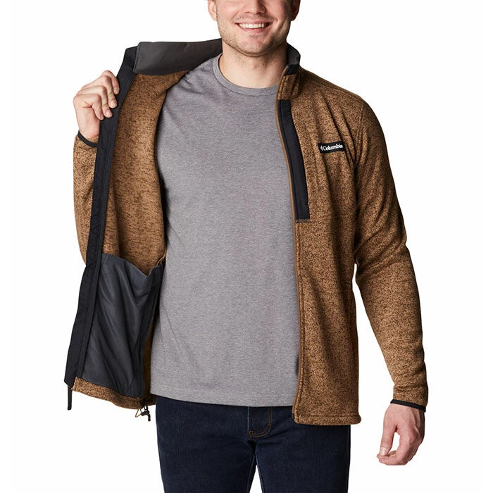 When the forecast looks chilly, throw on this light layer crafted with smooth knit fabric. Abrasion-resistant trim detail, drawcord adjustable hem, and zippered pockets complete the essential Sweater Weather⢠Fleece Full-Zip Jacket from Columbia.