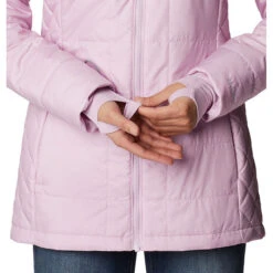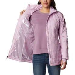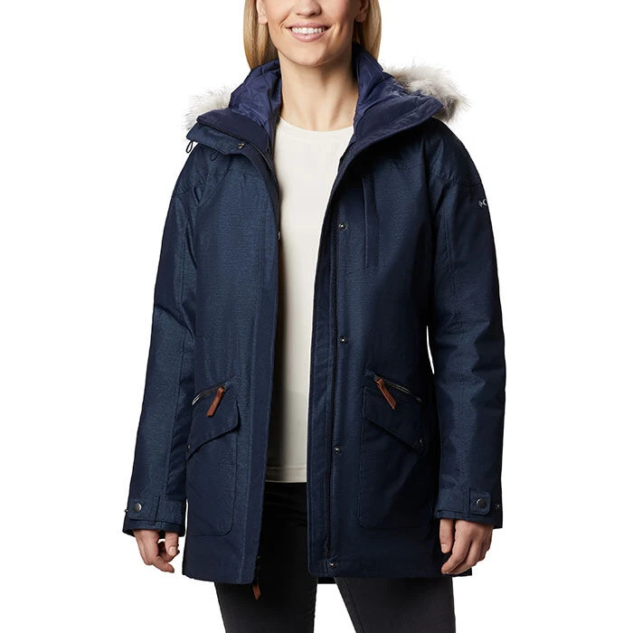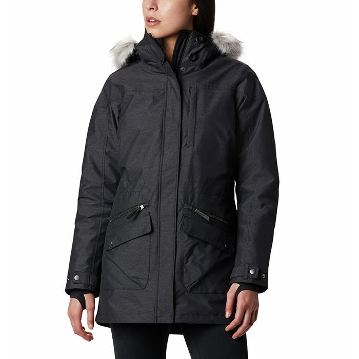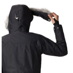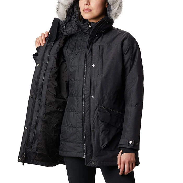 - Adjustable bungee-style drawstring at sherpa-lined hood