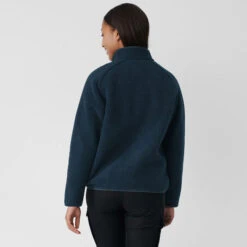 The Vardag is a warm, comfortable jacket from Fjallraven in two-layer teddy fleece made from recycled polyester. It’s structured outside with a flat-knitted jersey inside and features two hand pockets with zippers for safely storing small things. The full-length zipper at the front makes it easy to regulate warmth. The Vardag is perfect as a robust, warm midlayer on cold winter days and also works well as a light jacket in milder temperatures.
