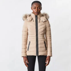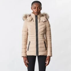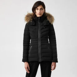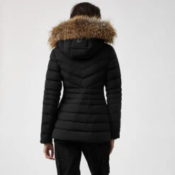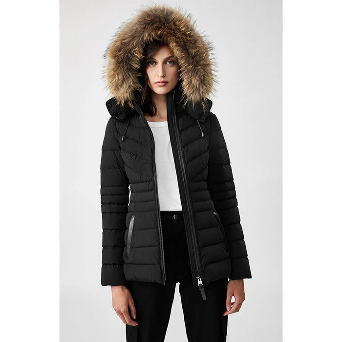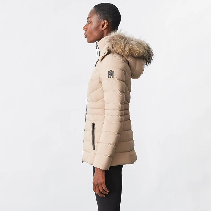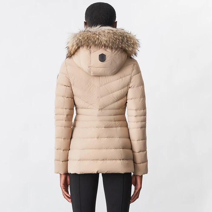- Detachable fur trim at hood