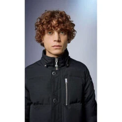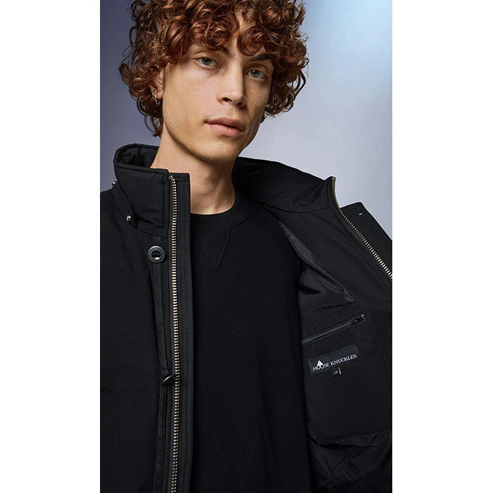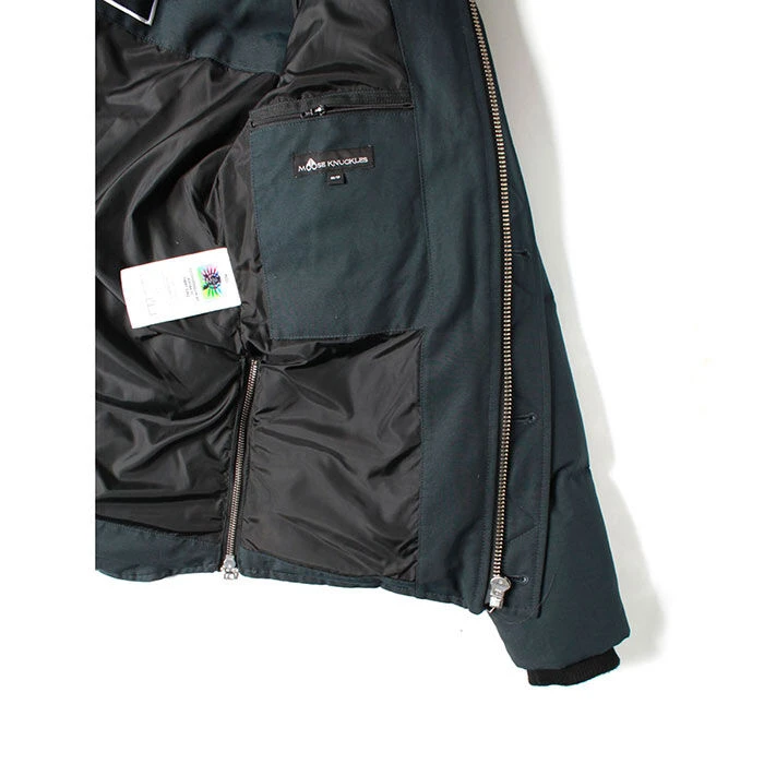 - Two-way front zip closure with storm flap