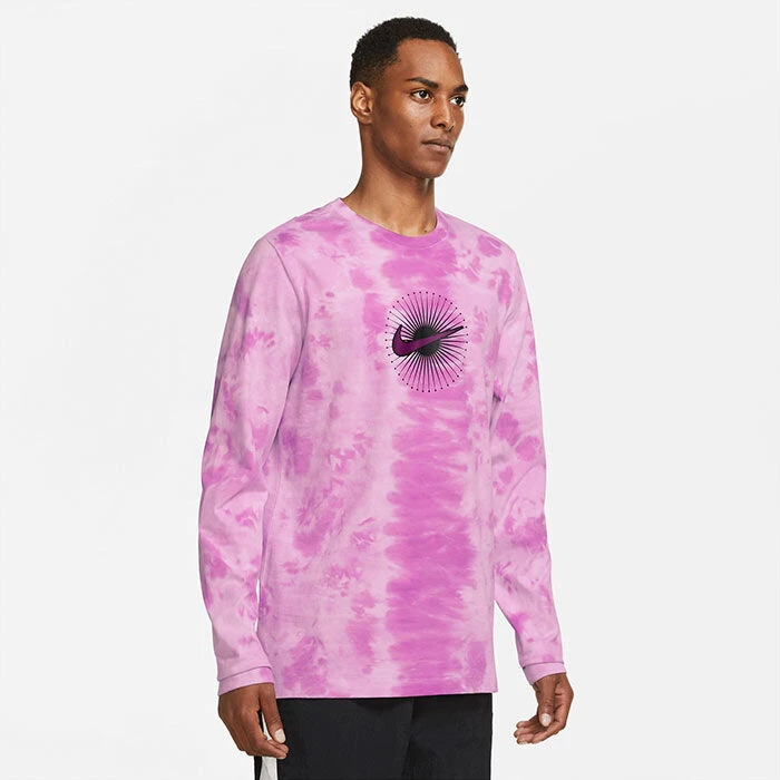 This Nike Sportswear Graphic Long Sleeve T-Shirt is made with mid-weight cotton fabric and a classic fit for a soft, familiar feel. Its allover tie-dye print provides a smooth foundation for the Swoosh logo at the chest.