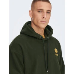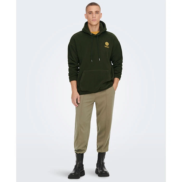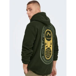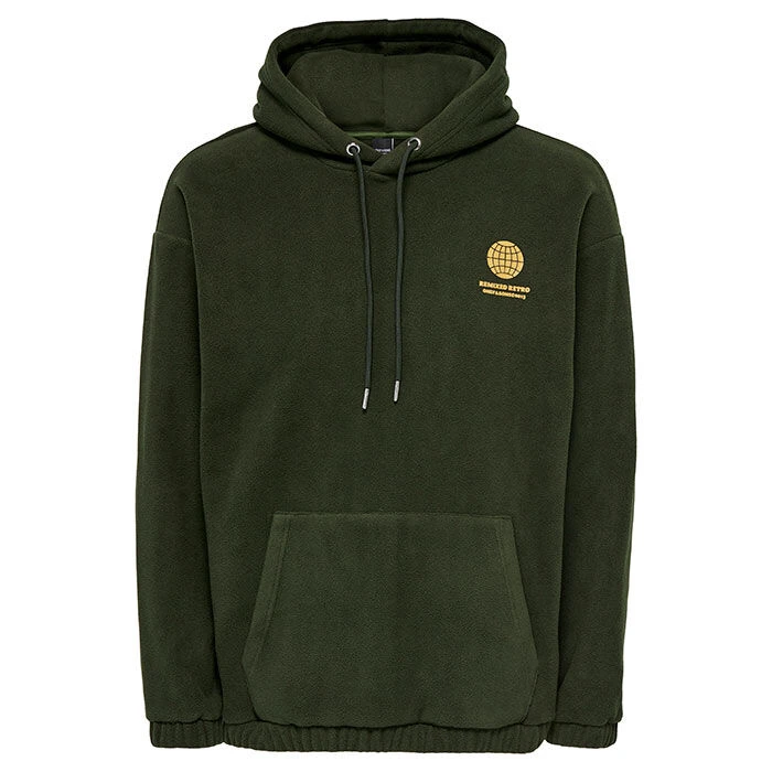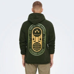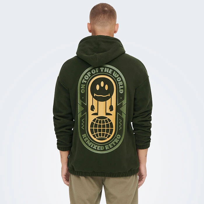 Pull on a little comfort to start your day off right with the men’s Spencer Pullover Hoodie from Only & Sons. This hooded sweatshirt is designed with elastic edges at the cuffs and hem, a kangaroo pocket, and printed graphics to make you feel like you’re on top of the world.