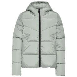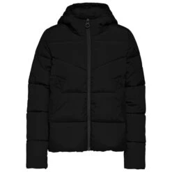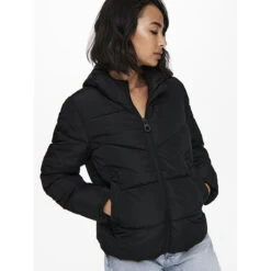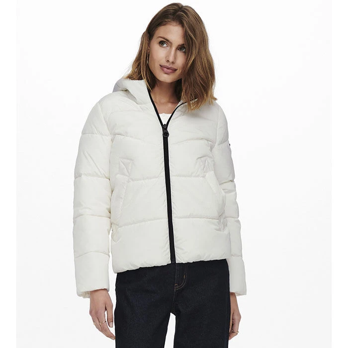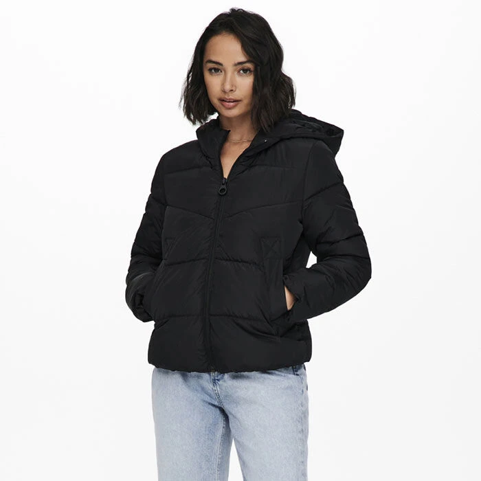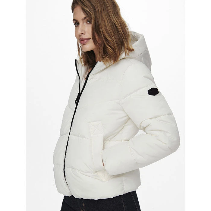 The ONLY Amanda Jacket is a short quilted puffer with synthetic fiber down insulation and a full-length front zipper. Other highlights include two front pockets, elasticized inner cuffs and a roomy hood for blocking chilly winds around the city.