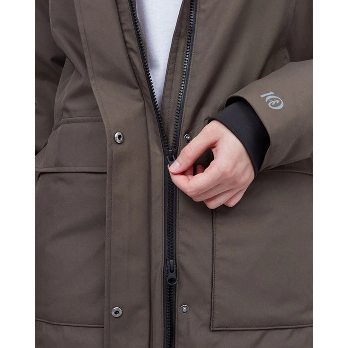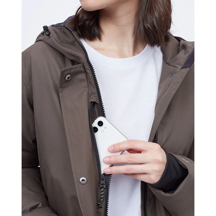 - Front zip closure with snap storm flap