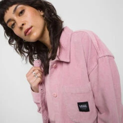A relaxed shirt jacket to help you weather the transitional months, the Vans Solo Scenario Shacket is made with comfortable cotton corduroy in a unique dusty pink colourway.