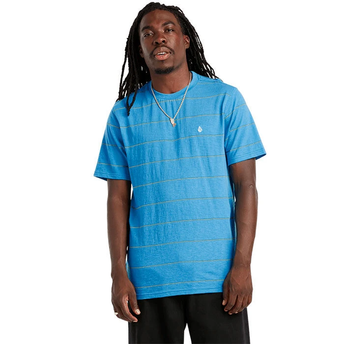 The short sleeve Rouston Crew T-Shirt from Volcom features yarn-dyed cotton jersey with a small embroidered logo and ladder stitch detail at the cuffs and hem.