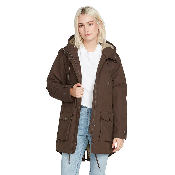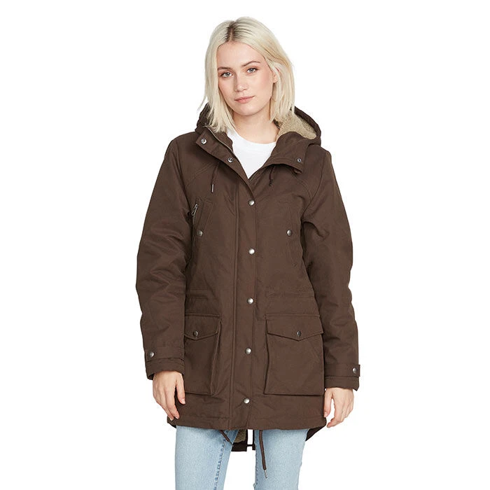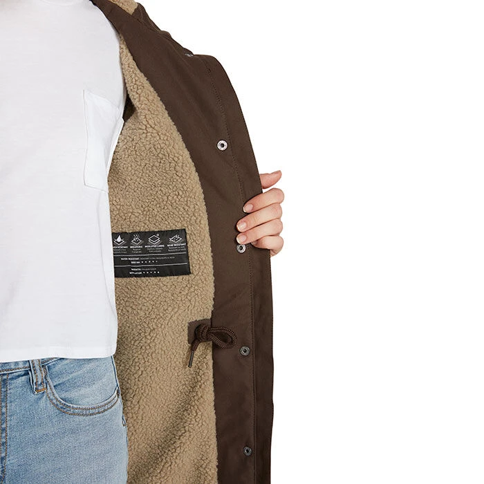 - Front zip closure with snap storm flap
