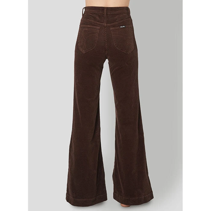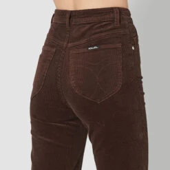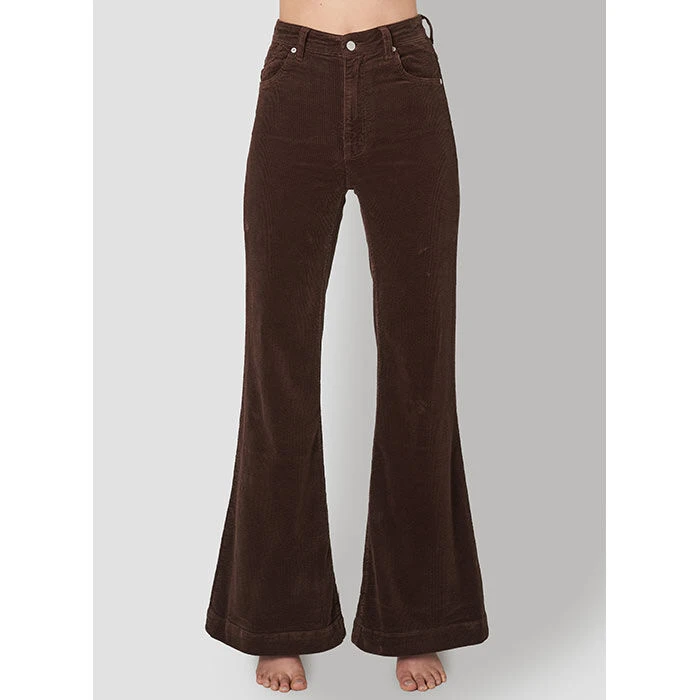 The Eastcoast Flare Pant in Brown Cord from Rolla’s is a high rise style crafted with soft wide ribbed corduroy for a rich, luxe look and feel that is stretchy without losing shape. Designed with an authentic vintage look, they also feature the brand’s signature back pocket stitching and belt loops.