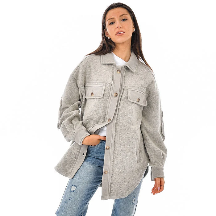 This trendy shirt jacket from Oak & Ivy is crafted with soft cotton-poly fleece, featuring a pointed collar, front button closure, dropped shoulders and an easy-to-wear relaxed fit.
