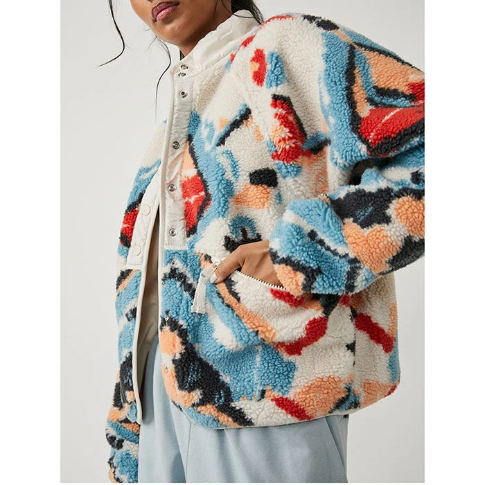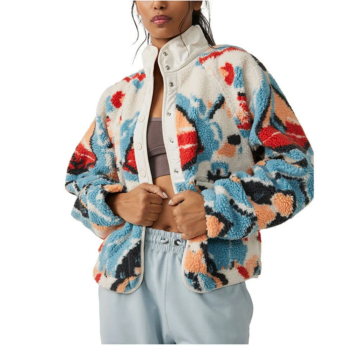 Layer up on chilly days in the Rocky Ridge Printed Fleece Jacket from FP Movement by Free People. This cozy piece features front button closure with elastic cuffs and contrast nylon trim.